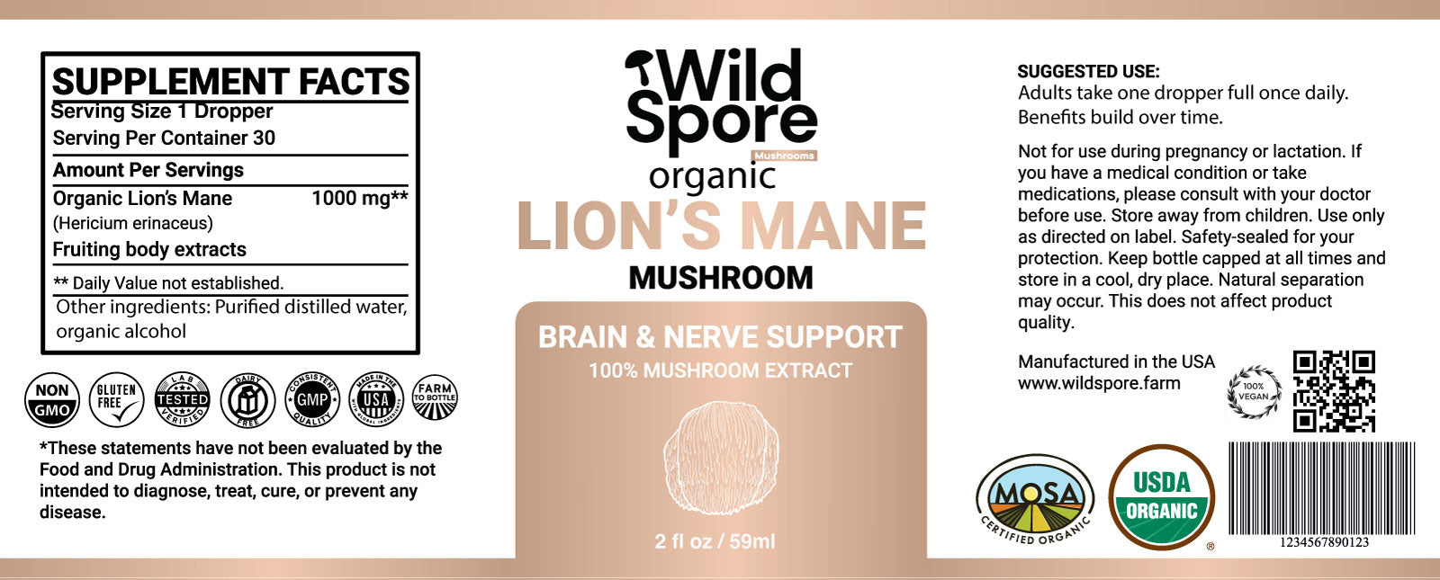 Our USDA Organic Lion's Mane tincture contains a rich spectrum of brain-supporting compounds: