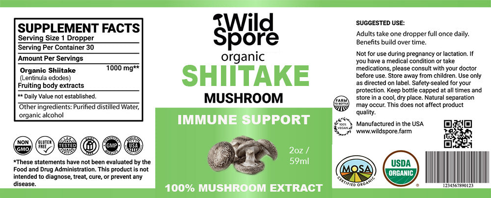 Double Extraction Method: Our unique double extraction process uses the fruiting bodies only and not the mycelium of the Shiitake Mushroom. This allows us to extract a wider range of beneficial compounds, such as beta-glucans and lentinan, for a more potent tincture.